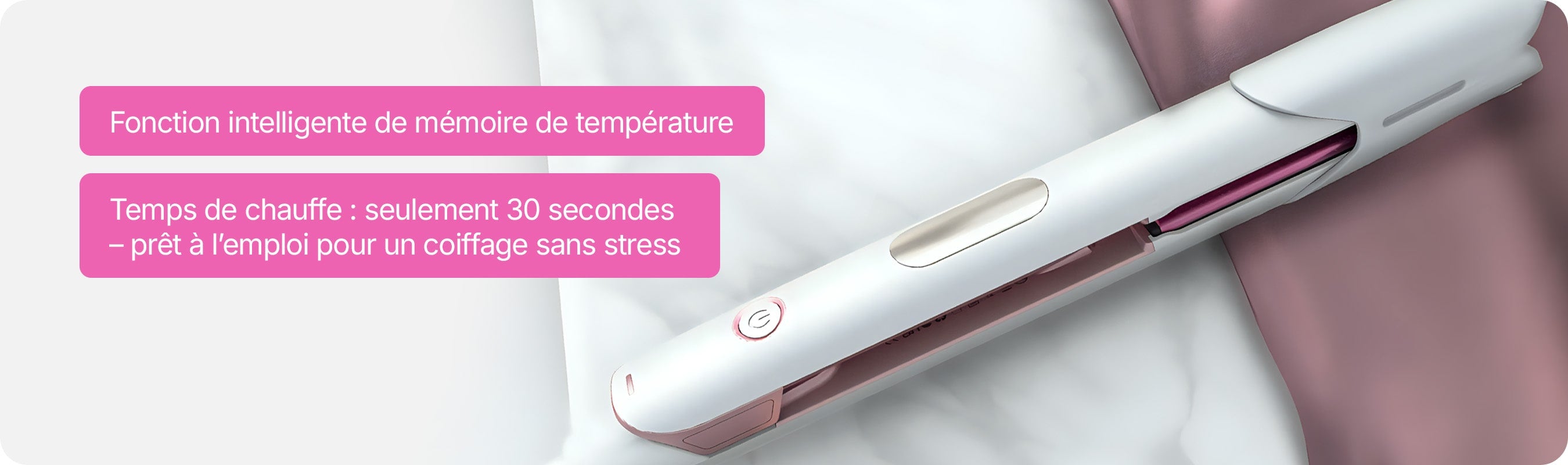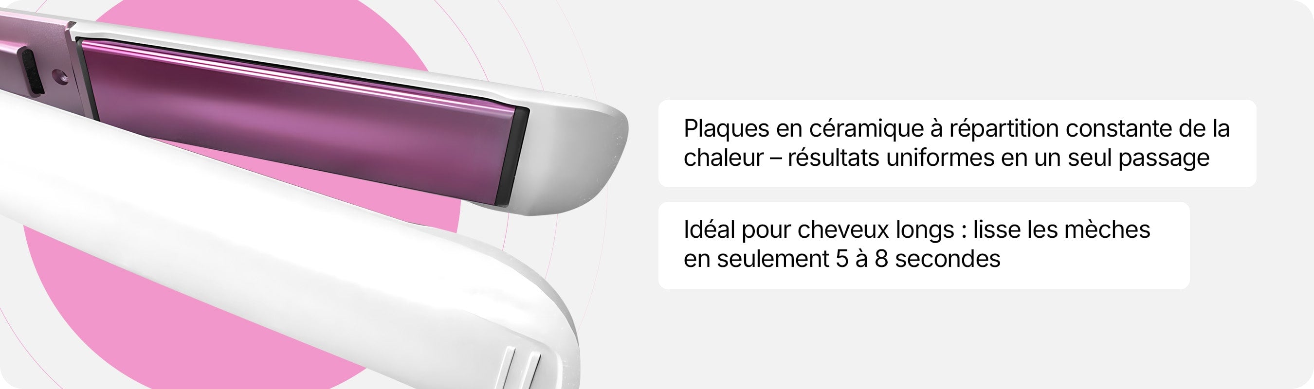 ✓ Lissage et boucles avec un seul appareil : Grâce à son design arrondi, ce lisseur est parfait pour lisser les cheveux ou créer des boucles. Le temps de chauffe rapide permet un coiffage efficace en quelques minutes.